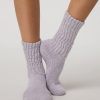 Cuddle up in the plush Cozy Sock crafted with soft yarns designed to be slouched around the ankle.