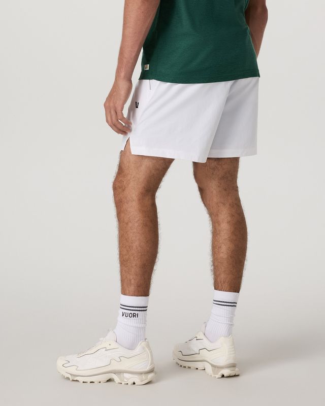 An instant Vuori classic, these men’s tennis shorts are designed for more than just the court. They’re made with a stretch woven material that keeps you comfortable whether you’re playing or spectating. This version is unlined and features a 5″ length with a notched hem for better flexibility.