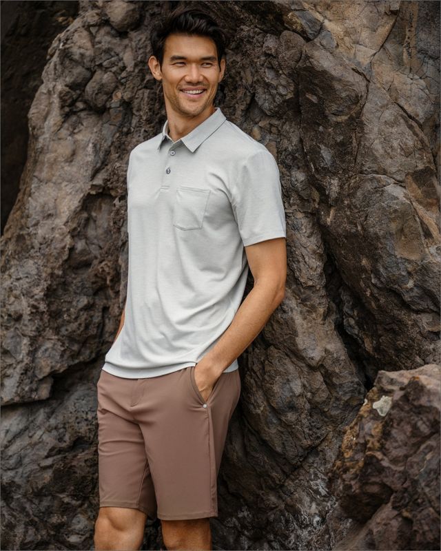 This performance stretch knit feels like a polished woven. Made from mostly recycled material, the Fleet Short has a hidden interior drawcord so you can leave the belt at home. A premium pair for tee times and lunch meetings.