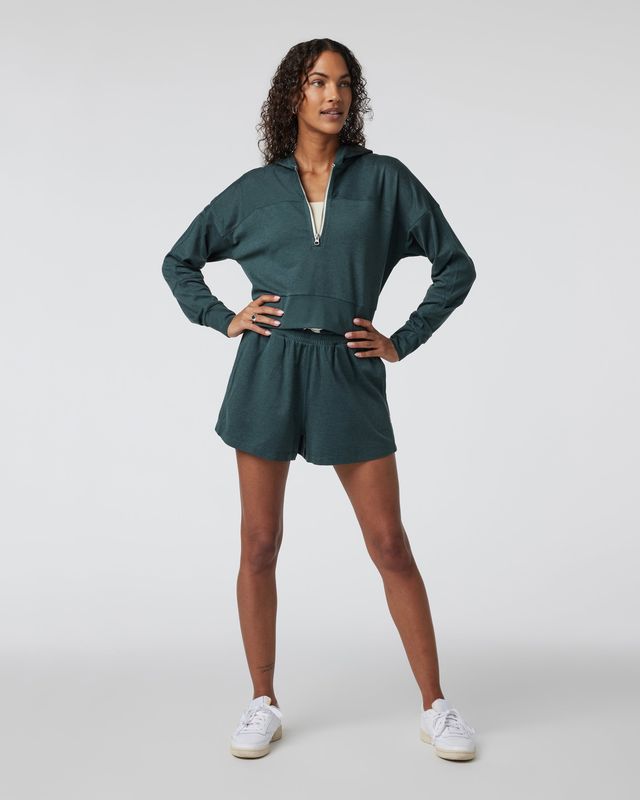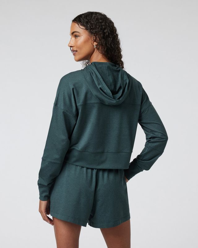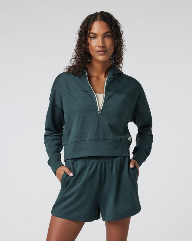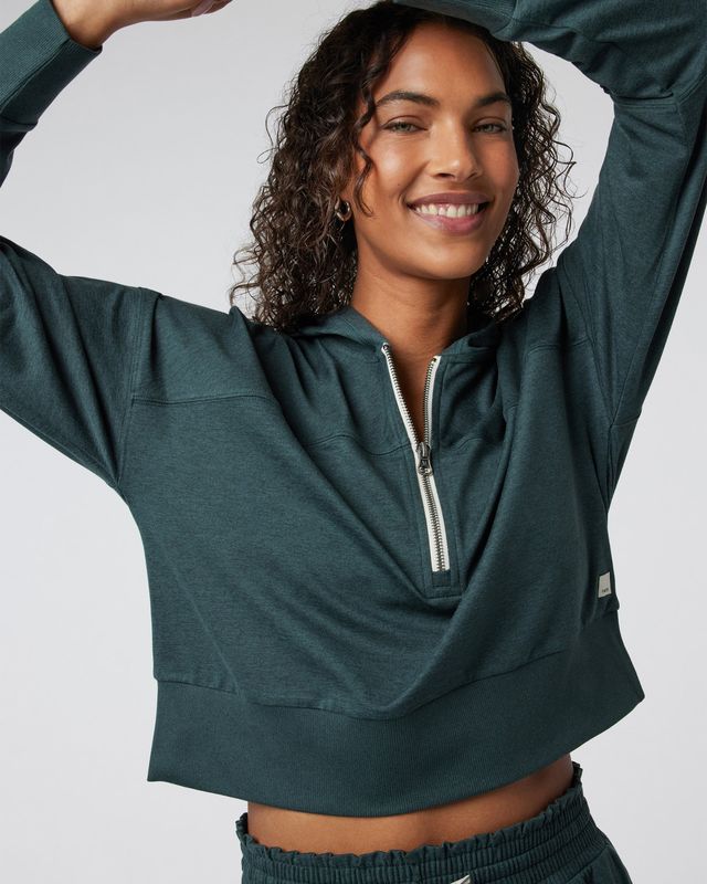Our best-selling DreamKnit™ fabric made from 89% recycled materials finds a new form with this cropped, boxy hoodie. Retro-inspired and super comfortable, this 1/2-zip hoodie has a slouchy fit that pairs seamlessly with sports bras and leggings and the Halo Warm-Up Jogger.