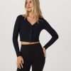 Made with our soft stretch rib knit, the Long Sleeve Pose Mini Cardigan offers lightweight comfort and easy styling. This semi-fitted women’s cardigan features a deeper plunge neckline with a front button closure, and a slightly cropped length.