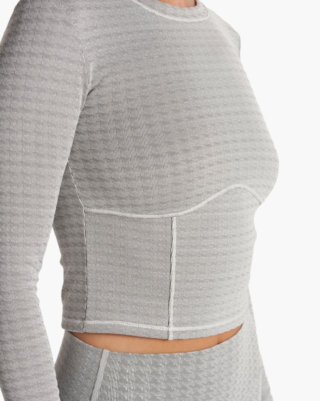 A corset-inspired long sleeve with real comfort. Built with an original jacquard stretch knit, this textured top is ideal for outdoor excursions and cool-weather recreation.
