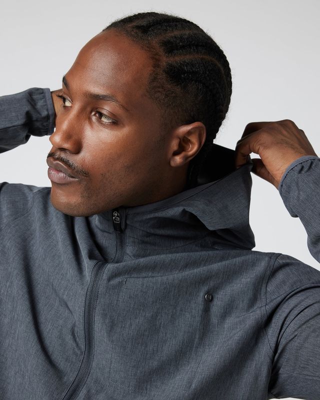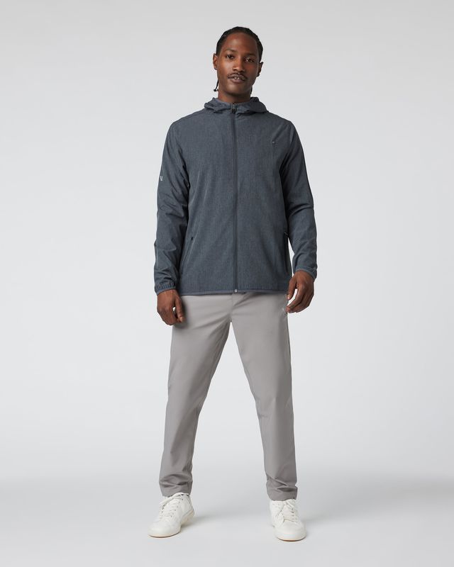 Take on the great outdoors in our men’s hooded Outdoor Trainer Shell jacket. The four-way stretch lightweight performance material is water resistant and moisture wicking. Plus, multiple zip pockets and a reflective logo have you covered on all your outside adventures.