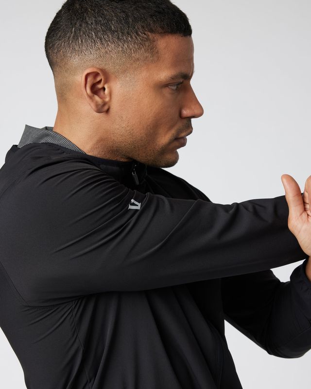 Take on the great outdoors with our men’s hooded Outdoor Trainer Shell jacket. Crafted from lightweight, 4-way stretch performance material, it’s water-resistant, moisture-wicking, and ready for anything. With multiple zip pockets and a reflective logo, this jacket has you covered for every adventure.