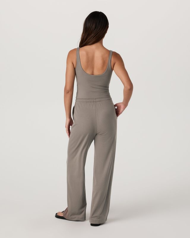 The Pose Scoop Jumpsuit is all about elegant comfort and effortless styling. Made with our innovative stretch rib knit, this sleeveless jumpsuit features a scoop neckline, built-in bra with pads, and classic straight leg.