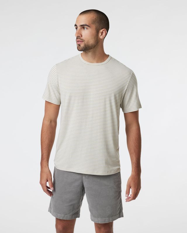 With the comfort of cotton and the function of performance tech, this striped short-sleeve tee is a versatile essential made with 95% recycled polyester.