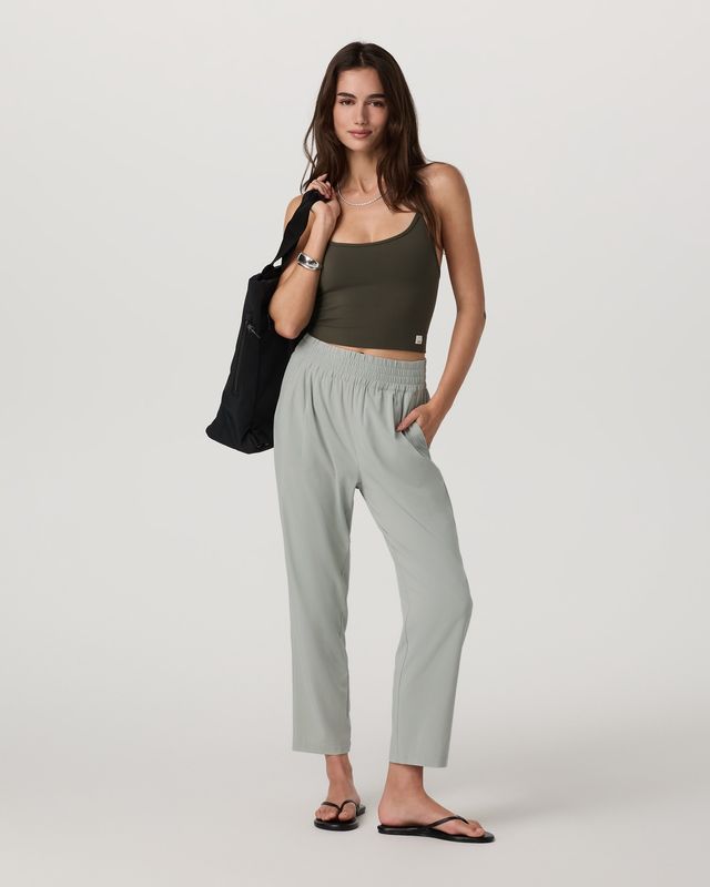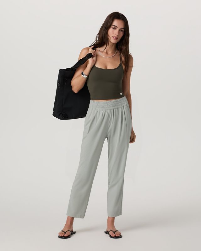 A new addition to our Villa lineup, this ankle-length pant features a straight leg, smocked waistband, and flattering high rise. With front slash pockets and playful pleats, they look great dressed down for running errands or dressed up for a night out.